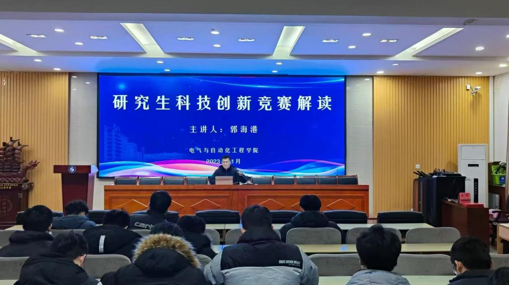 为激发研究生创新精神,营造浓厚科研氛围,自动化学院于11月8日成功举办研究生科技创新竞赛解读会。本次讲座由研究生辅导员郭海港老师主讲,为同学们提供了精准的竞赛政策解读与备赛指导。