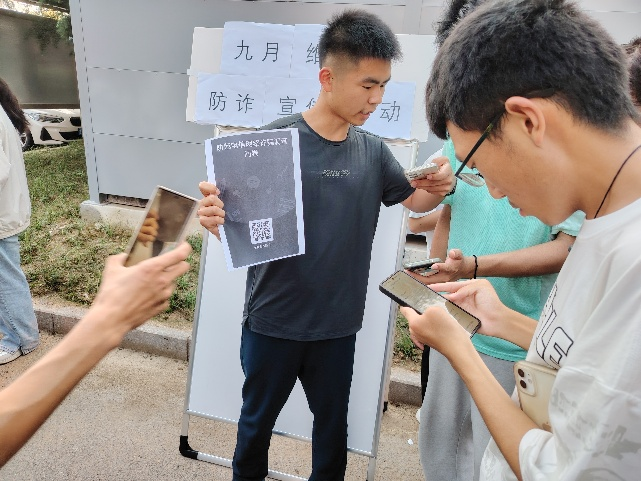 为切实掌握大一、大二学生的防诈骗意识现状,进一步筑牢校园安全防线,9月30日下午,自动化学院综合事务部在GB3宿舍楼下组织开展了一场面向学院大一、大二学生的专项权益宣传调查活动。