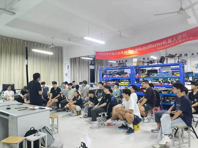 为凝聚团队力量、明确备赛方向,助力战队在全国赛中再创佳绩,7 月 29 日,山东科技大学电气与自动化工程学院 SmartRobot 机器人协会在 J11-218 教室召开机甲大师全国赛动员会。指导教师高正中、战队 32 名备赛成员参会,战队负责人杨浩田主持会议。