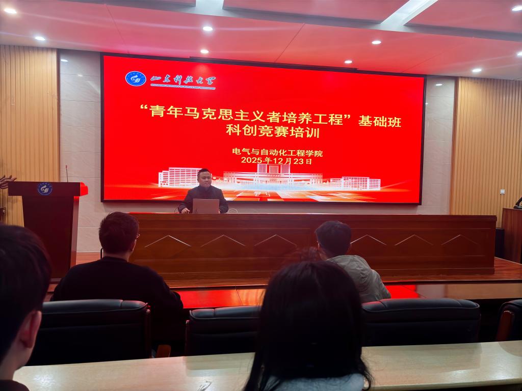 为提升青年学生干部的创新素养与实干能力,12月23日,电气与自动化工程学院2025-2026学年“青马工程”基础班举办科创竞赛赋能讲座,学院科创指导老师孟庆祥担任主讲,全体青马学员、学院团支书参加学习。