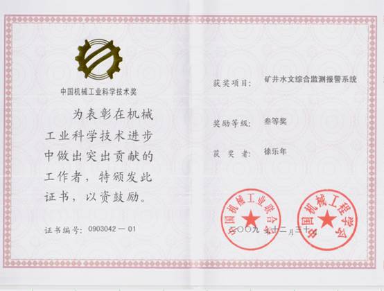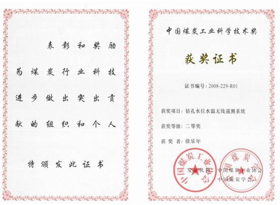 地面系统2006年通过山东省科技厅主持的鉴定,被评为国际先进水平,并于2008年获得中国煤炭工业科学技术二等奖。
