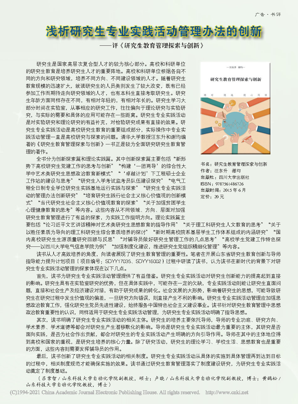 8.论文:浅析研究生专业实践活动管理办法的创新