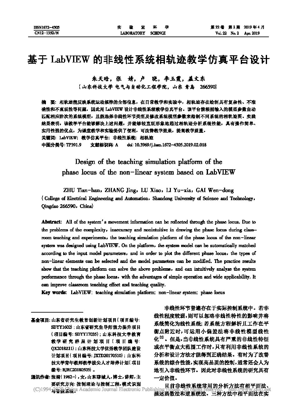 9.论文:基于LabVIEW的非线性系统相轨迹教学仿真平台设计