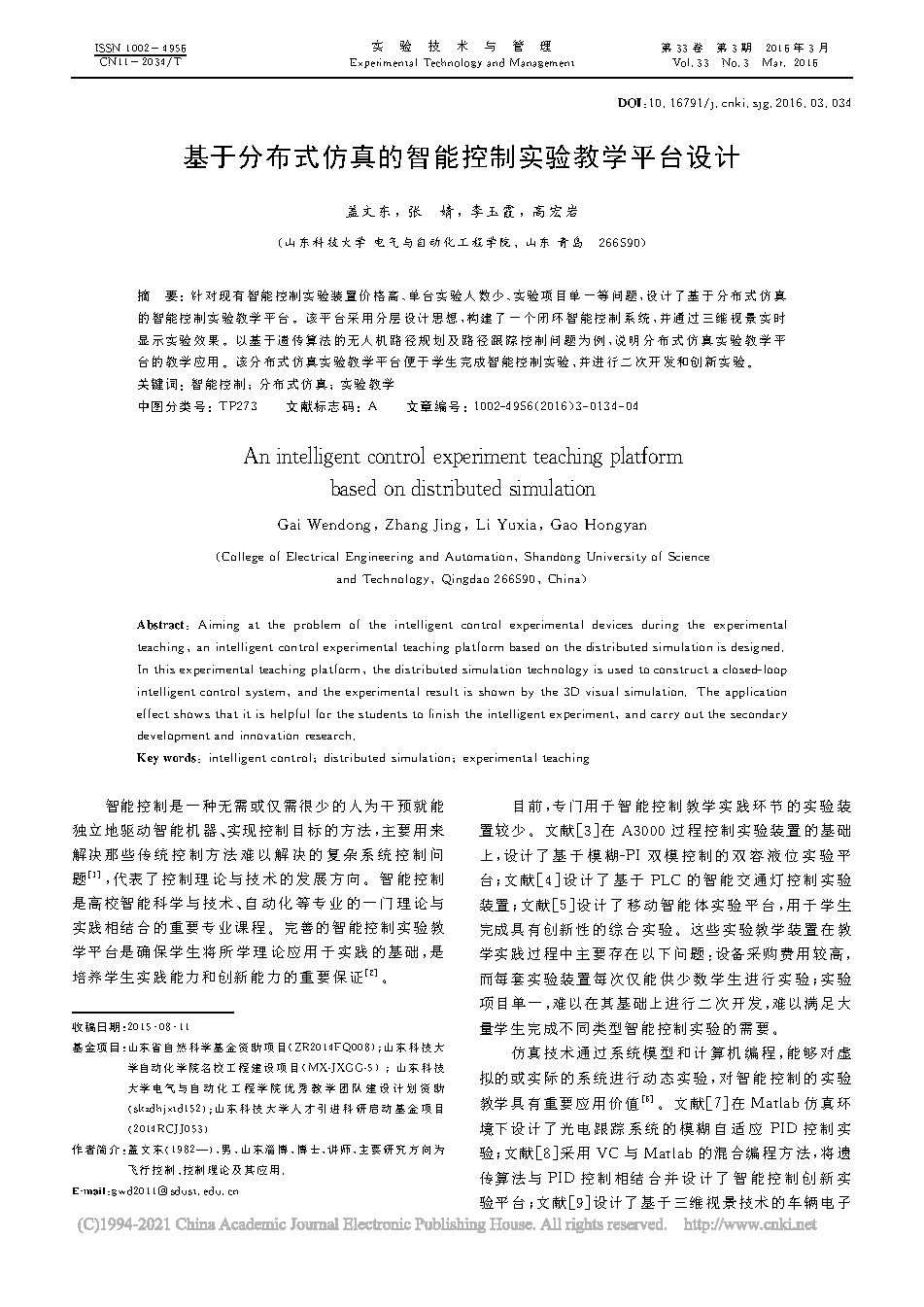 20.论文:基于分布式仿真的智能控制实验教学平台设计
