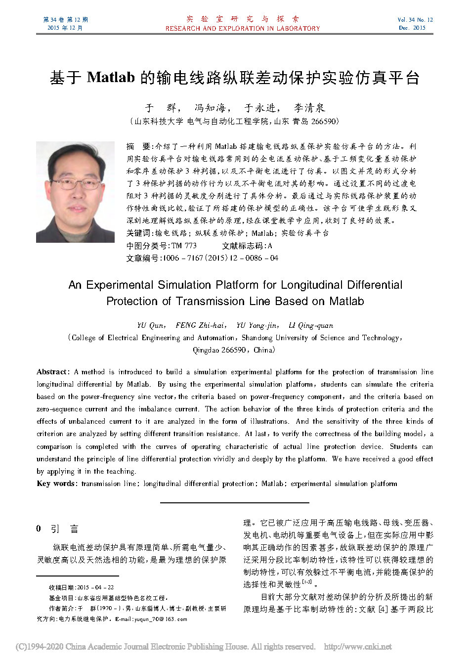 21.论文:基于Matlab的输电线路纵联差动保护实验仿真平台