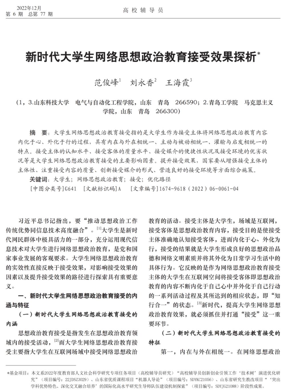 7 新时代大学生网络思想政治教育接受效果探析