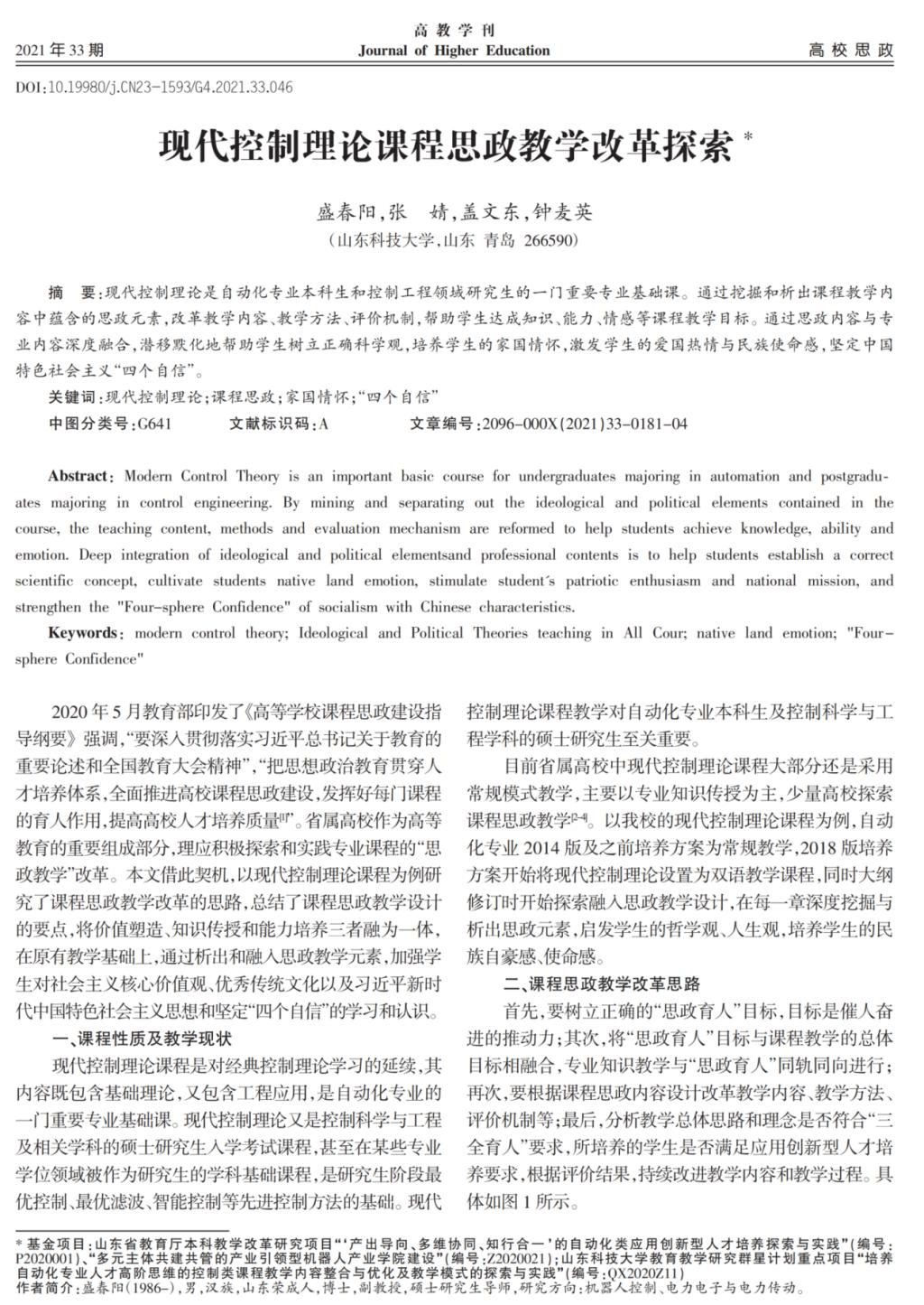 11 《现代控制理论》课程思政教学改革探索